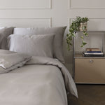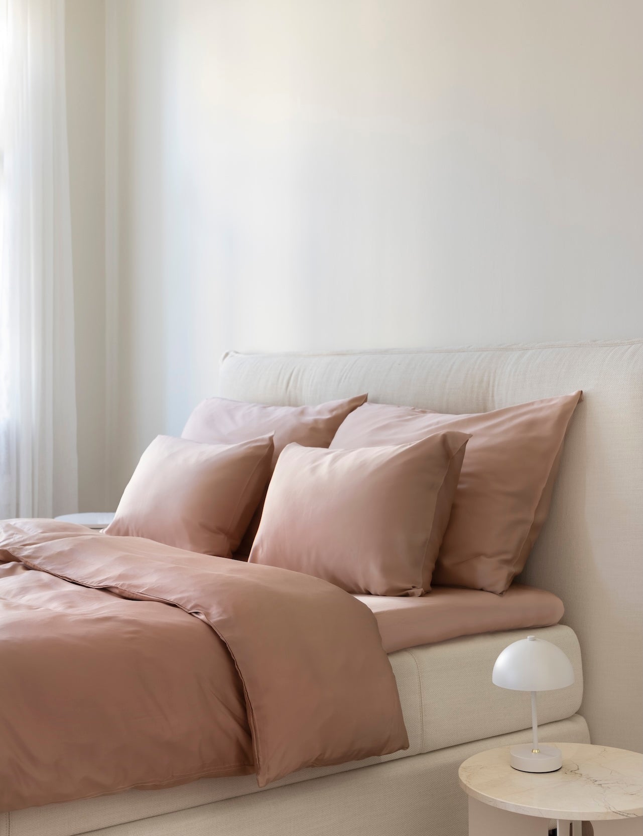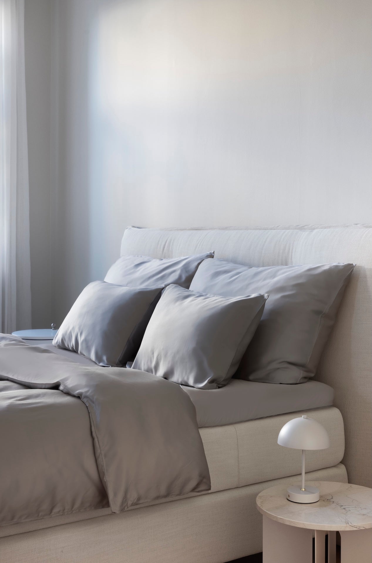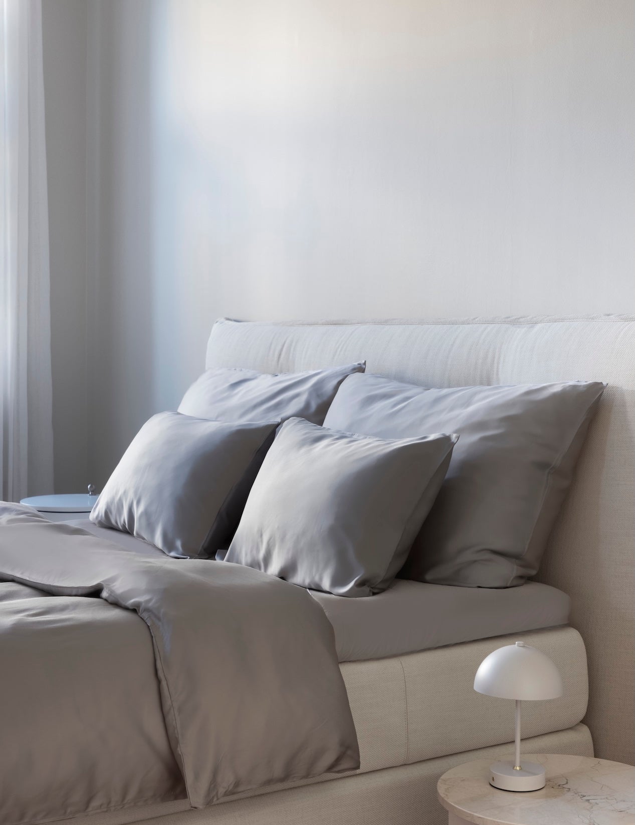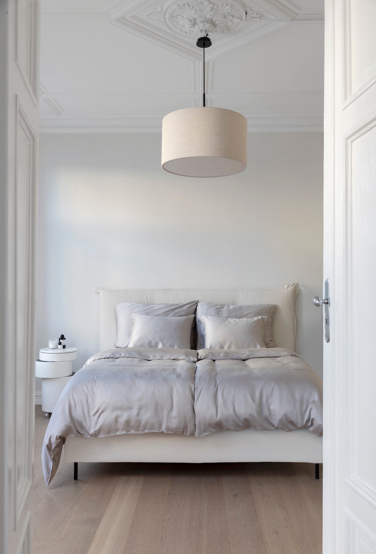 Vårt sengesett er ikke bare en estetisk tilvekst til ditt soverom, det er også et naturlig pustende stoff som gir deg en behagelig nattesøvn. Den temperatur regulerende effekten gir deg en behagelig temperatur gjennom hele natten, mens den innebygde bakteriehemmende og anti-fuktige egenskapen gir deg et miljø som både er hygienisk og komfortabelt.