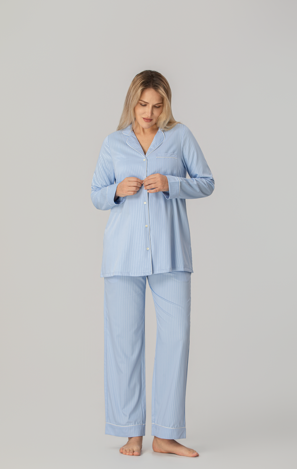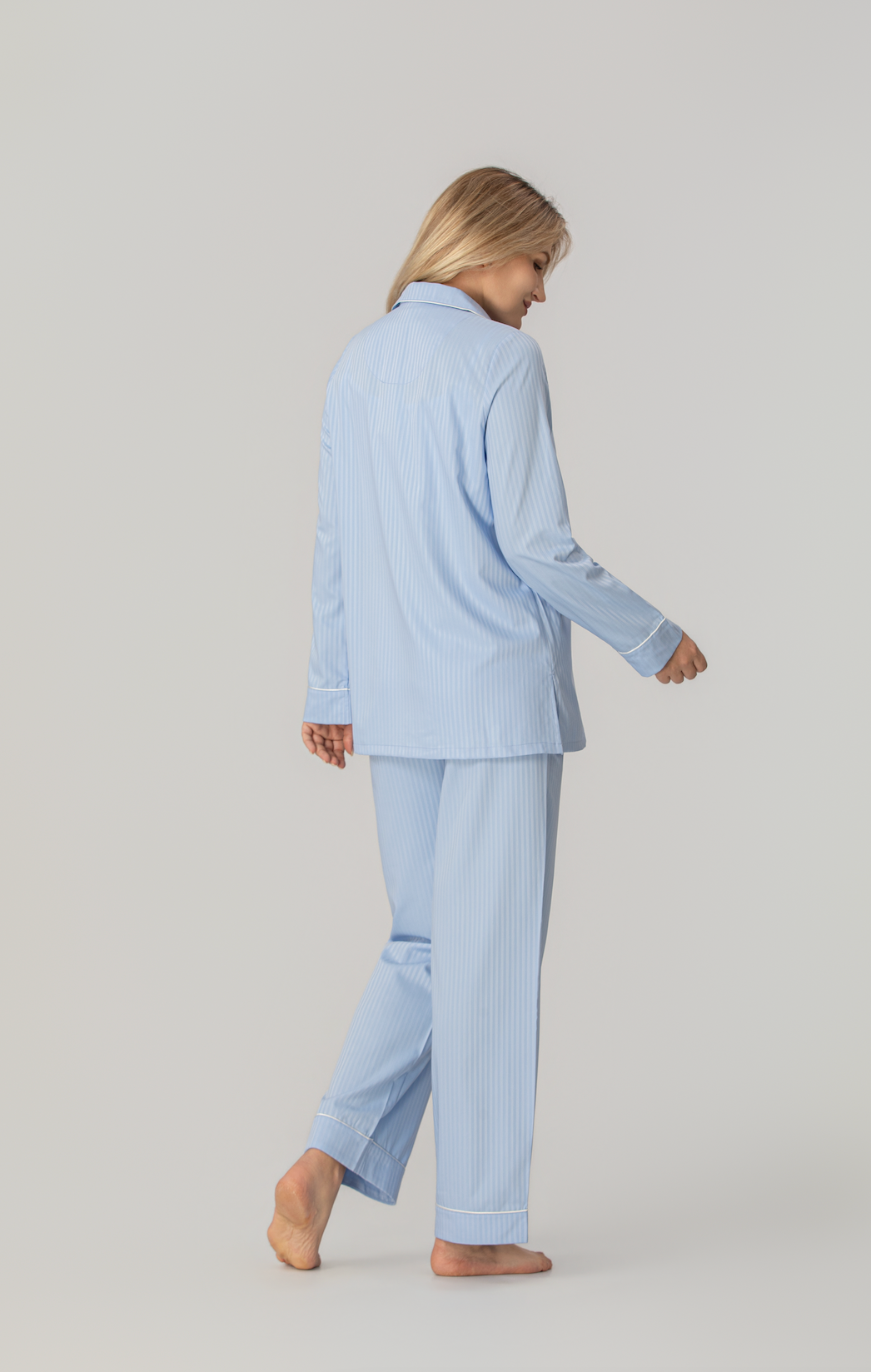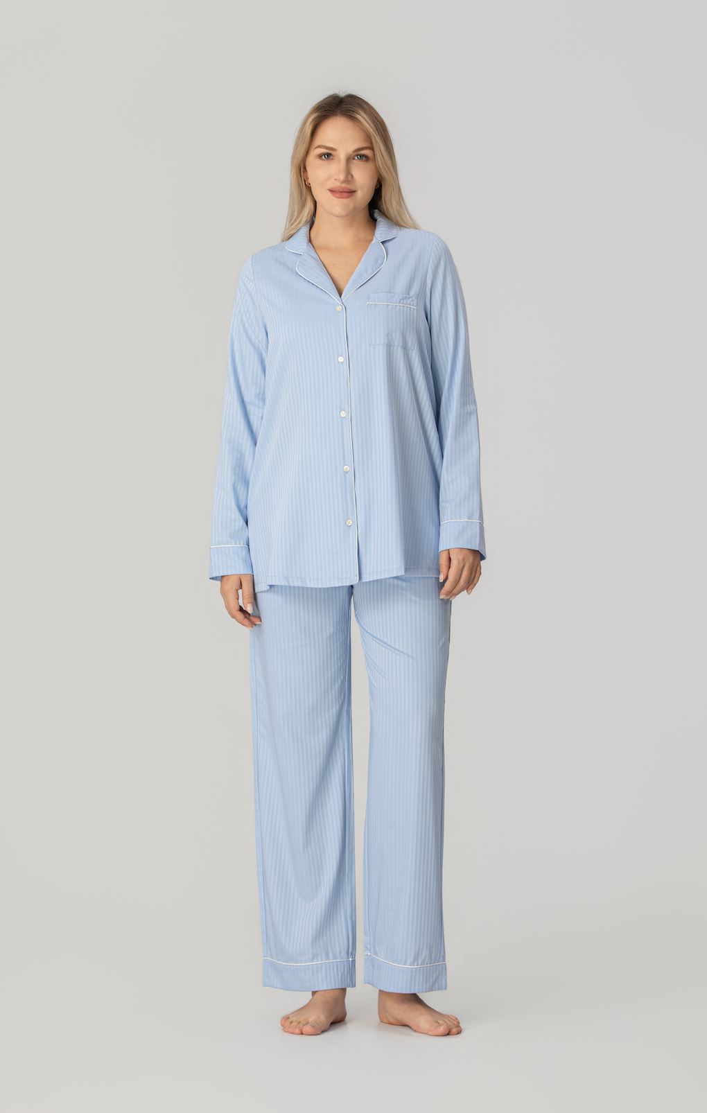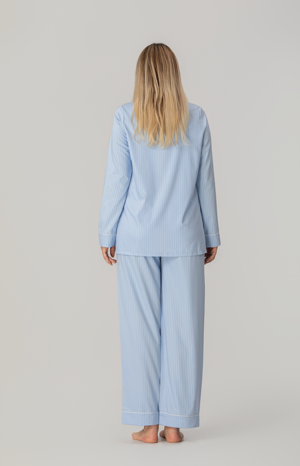 Med en loose fit og myk fleksibilitet følger pyjamasen kroppens naturlige bevegelser. Den gir full bevegelsesfrihet og en avslappet følelse, enten du sover, hviler eller beveger deg rolig gjennom morgenrutinen.