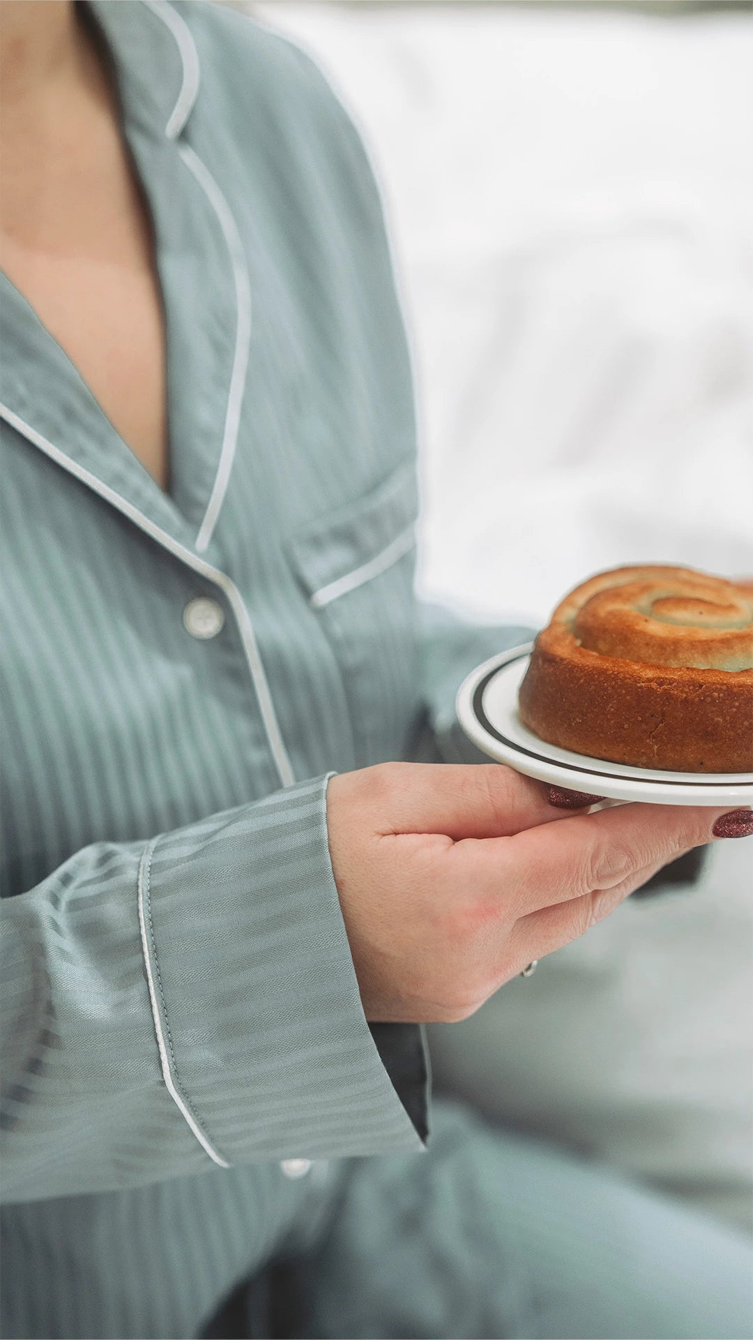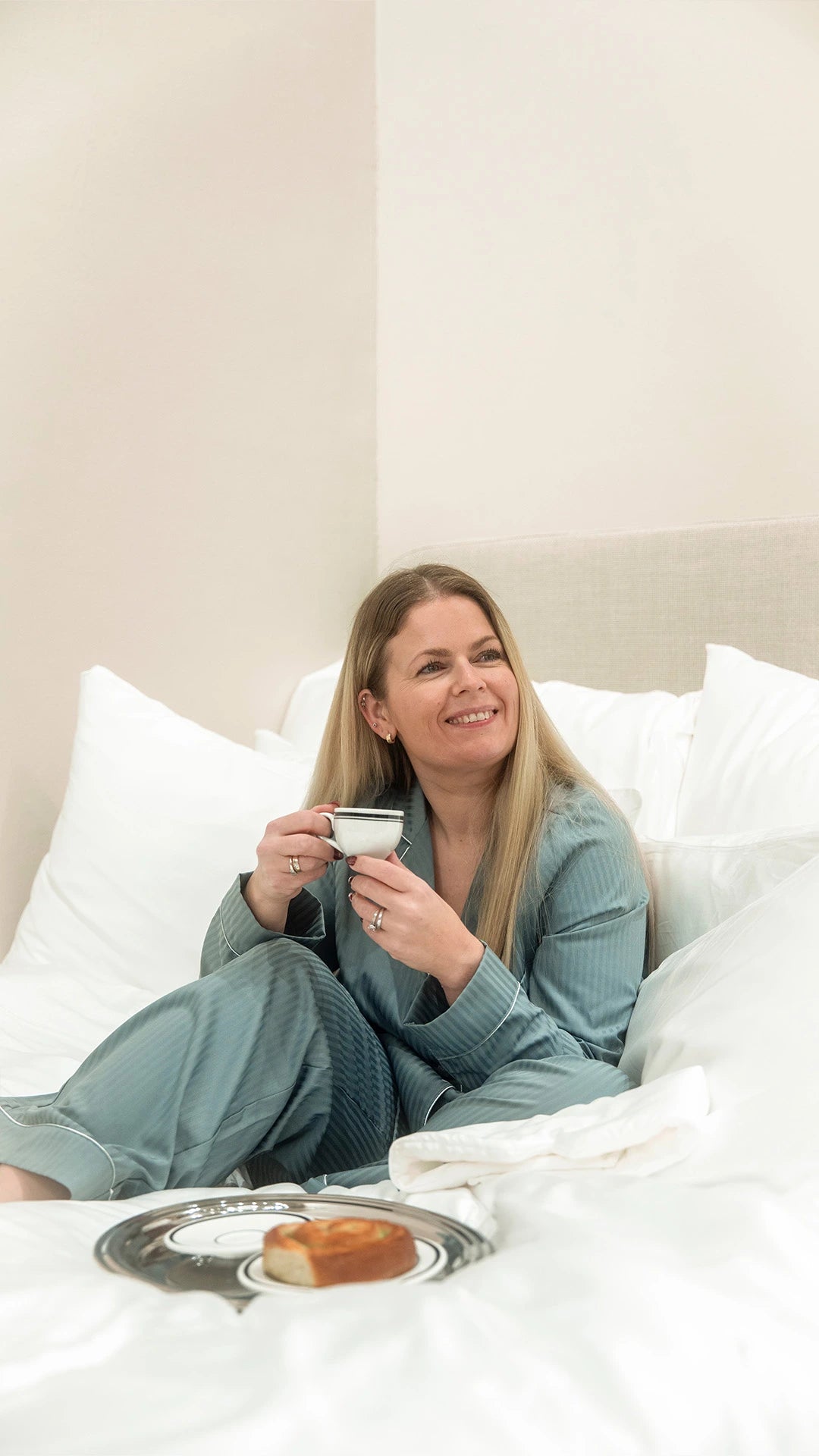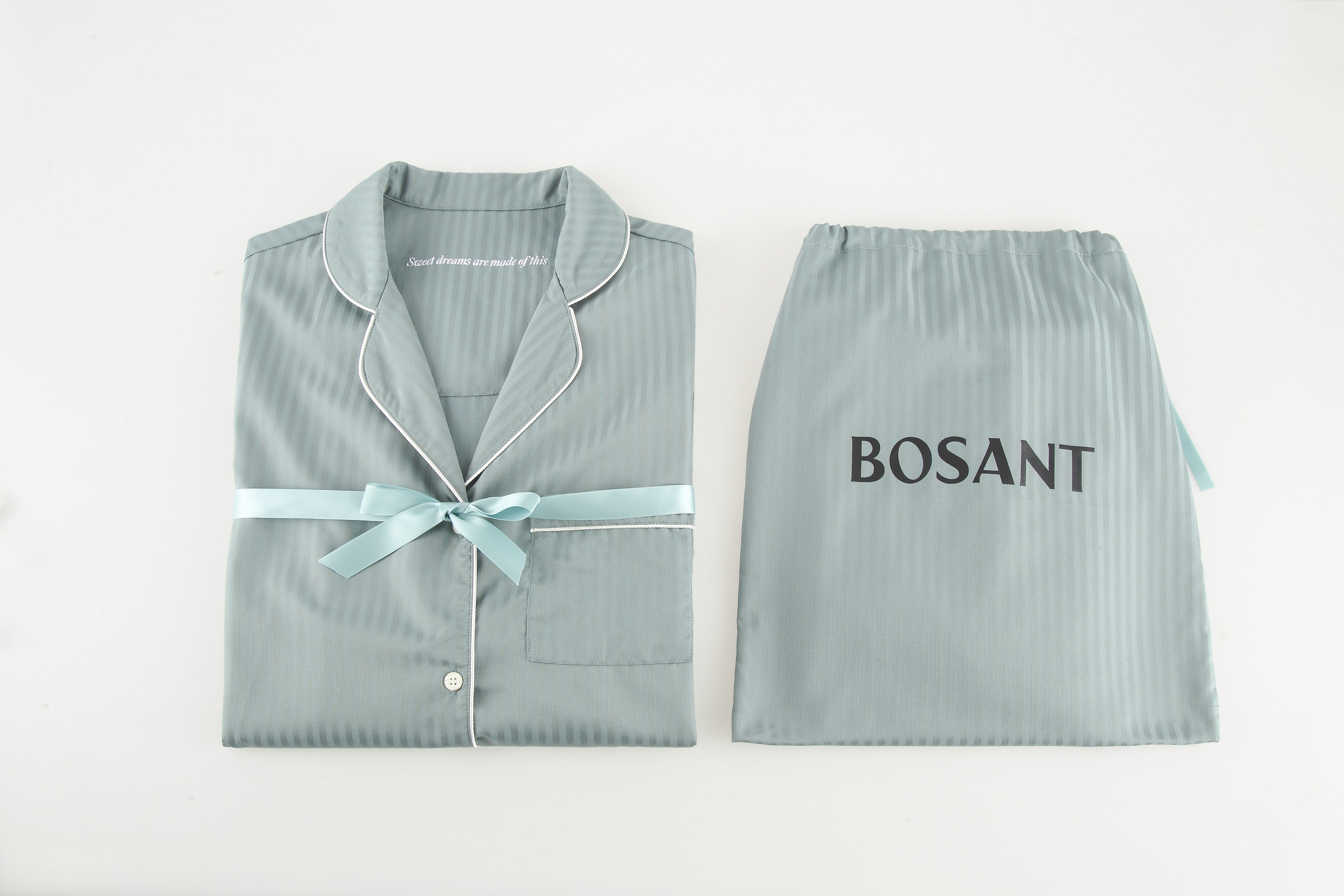 Bosant pyjamas har en avslappet og loose fit, med gjennomtenkt passform som gir god bevegelsesfrihet uten å føles posete. Den er designet for komfort både om natten og på rolige morgener hjemme. Vi anbefaler å velge din vanlige størrelse eller en størrelse mindre.